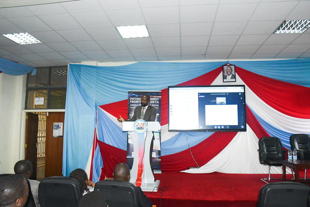 The Department of Physical Sciences commenced its workshop on Electronic Structure Methods, under the theme “Physics Without Frontiers.” The training, which emphasized the pivotal role of physics in advancing scientific and technological progress, was officially opened by the DVC (AFP&D), Prof. Jonah Kindiki. He highlighted the importance of inspiring students to engage with the subject and ensuring they graduate as well-rounded and competitive professionals. Dr. Zipporah Muthui, the Project Coordinator, welcomed the guest speakers, including Prof. Dickson Andala, CEO of NRF-Kenya; Dr. Werner Janse van Rensburg, CHPC Research Manager from CHPC, Cape Town, South Africa; and Prof. Kate Shaw, ICTP-PWF Coordinator from ICTP, Italy, who all delivered their presentations virtually, highlighting the significance of physics in driving innovation. Facilitators led participants through detailed sessions on materials research, critical elements of solid-state physics for crystal structure analysis, and the basics of electronic structure methods. The five-day workshop aims to provide participants with a deeper understanding of advanced scientific concepts, meaningful engagement with leading experts, and hands-on experience in electronic structure methods and solid-state physics.